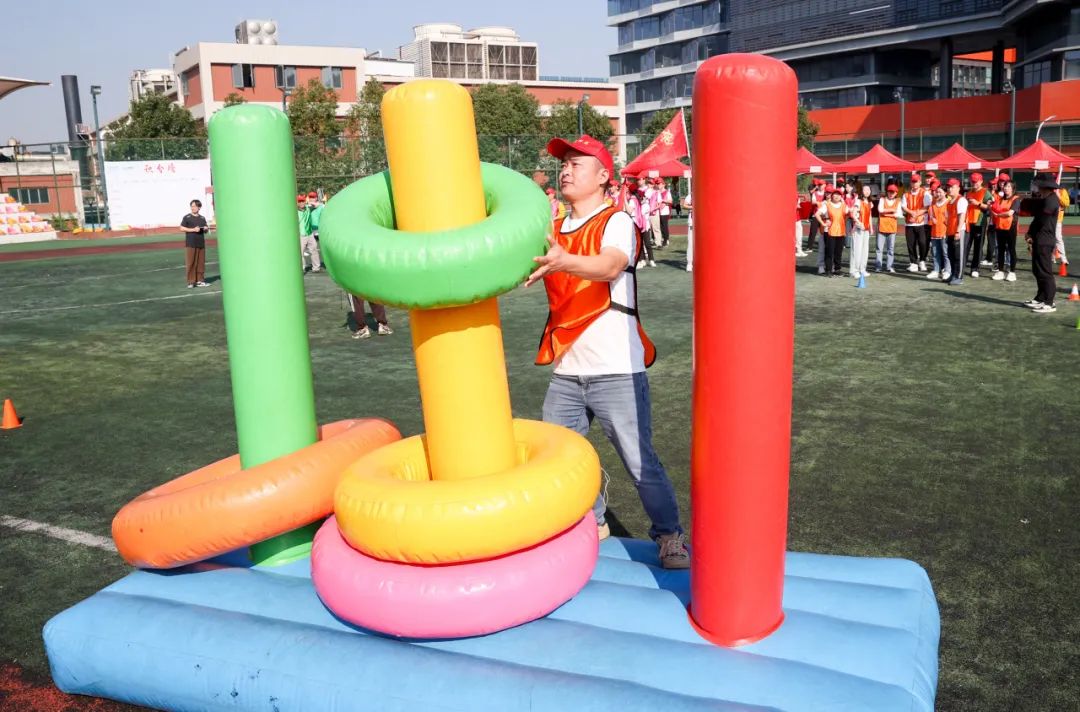 本次趣味運(yùn)動(dòng)會(huì)共有8支隊(duì)伍參賽,設(shè)有螃蟹賽跑、挑戰(zhàn)極限、一路向前、旋轉(zhuǎn)接力、步步高升5個(gè)比賽項(xiàng)目,比賽項(xiàng)目集趣味性、娛樂(lè)性、協(xié)作性、競(jìng)爭(zhēng)性于一體,既是體能的角逐,又是智慧的較量。
