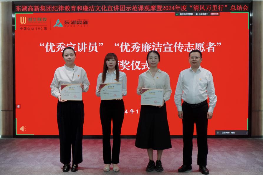 在2024年度“清風(fēng)萬里行”總結(jié)表彰環(huán)節(jié),會議宣讀了《關(guān)于表彰“優(yōu)秀宣講員”“優(yōu)秀廉潔宣傳志愿者”的決定》,并為“優(yōu)秀宣講員”獲獎?wù)?、“?yōu)秀廉潔宣傳志愿者”獲獎?wù)叽眍C發(fā)證書。