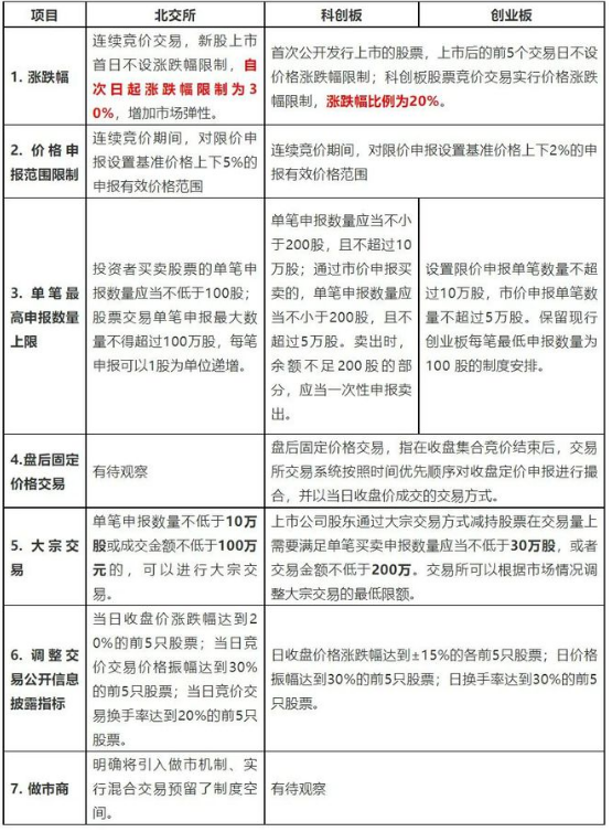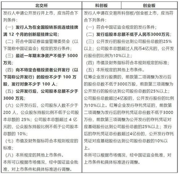 四、目前北交所、科創(chuàng)板、創(chuàng)業(yè)板實(shí)行注冊制,這三者之間又有什么樣的區(qū)別呢?